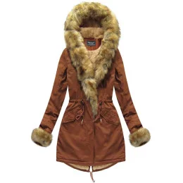 Dámska zimná bunda s kožušinou z karamelovej bavlny (xw793x)