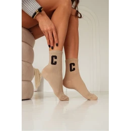 Bawełniane Skarpetki Damskie Z Literą C Beżowe