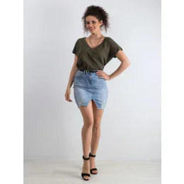 Bavlnené tričko s výstrihom do V v khaki farbe .