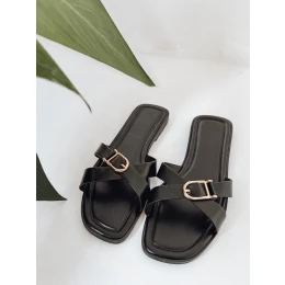 Dámske šľapky z kvalitnej ekokože, s ozdobnou prackou a prekríženými remienkami. Vďaka štýlovému dizajnu a univerzálnemu charakteru sa hodia k šatám aj džínsom. Ľahké, pohodlné a módne - skvelé na jarné dni.