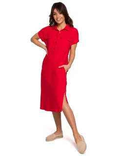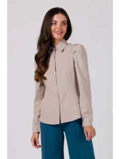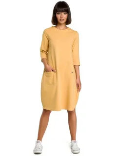 Zavinovacie šaty so šálovým golierom B255 - béžové - BEwear