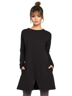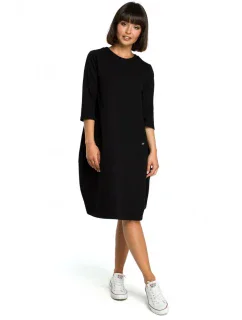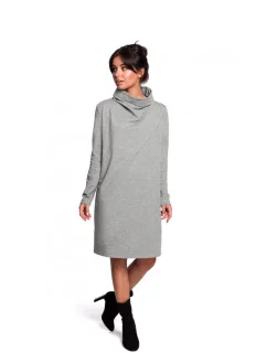 Dámske trapézové šaty s rebrovaným lemom B044 sivé - BEwear