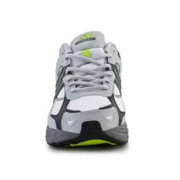 - Svršek obuvi inspirovaný retro stylem je vyroben z vrstvené směsi síťoviny a syntetické kůže, je dokončen v bílé a šedé barvě a zvýrazněn zelenými akcenty.