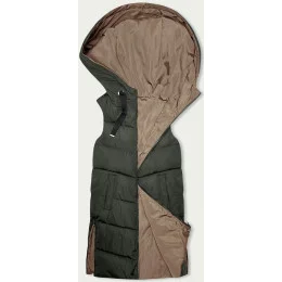 Dámska dlhá obojstranná vesta khaki-béžová (B8248-11)