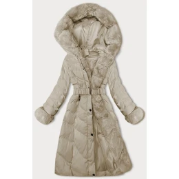 Béžová dámska zimná bunda s opaskom (5M3156-62)