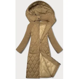 Béžová prešívaná dámska prechodná bunda s dĺžkou po kolená Way Mode (OMS-10WD-03)
