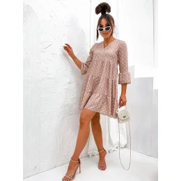 Béžové bodkované šaty s volánmi (706)