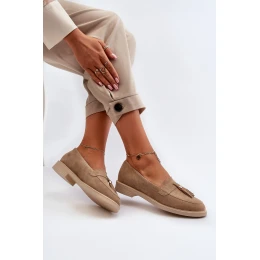 Zazoo 3420 Zamszowe Mokasyny Damskie Na Płaskim Obcasie Beżowe