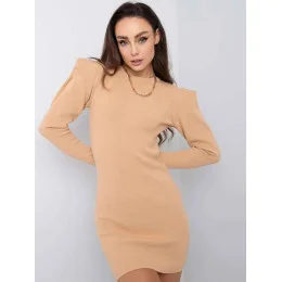 Béžové pletené šaty Rue Paris so širokými ramenami (5676)