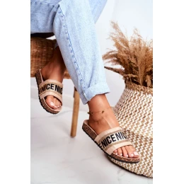 Béžové papuče s korkovou podrážkou a zirkónmi Be Nice