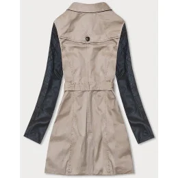 Béžový dámský kabát z různých spojených materiálů model 18311081 - LHD