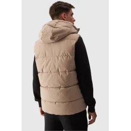 Bezrękawnik Puchowy Męski Z Kapturem 4FWAW24TVJAM144-83S Beżowy
