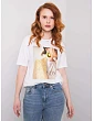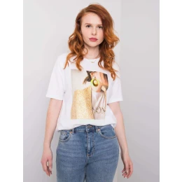Biele dámske tričko s potlačou a aplikáciou .
