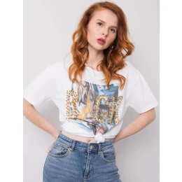 Biele tričko s aplikáciou šperkov .