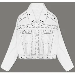 Biela dámska džínsová bunda s kamienkami (M7010)