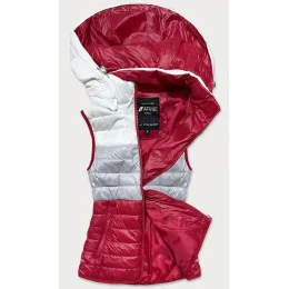 Bielo-šedo-červená dámska vesta s kapucňou (6304)
