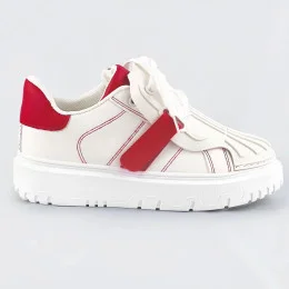 Bielo-červené dámske športové topánky so zakrytým šnurovaním (RA2049)