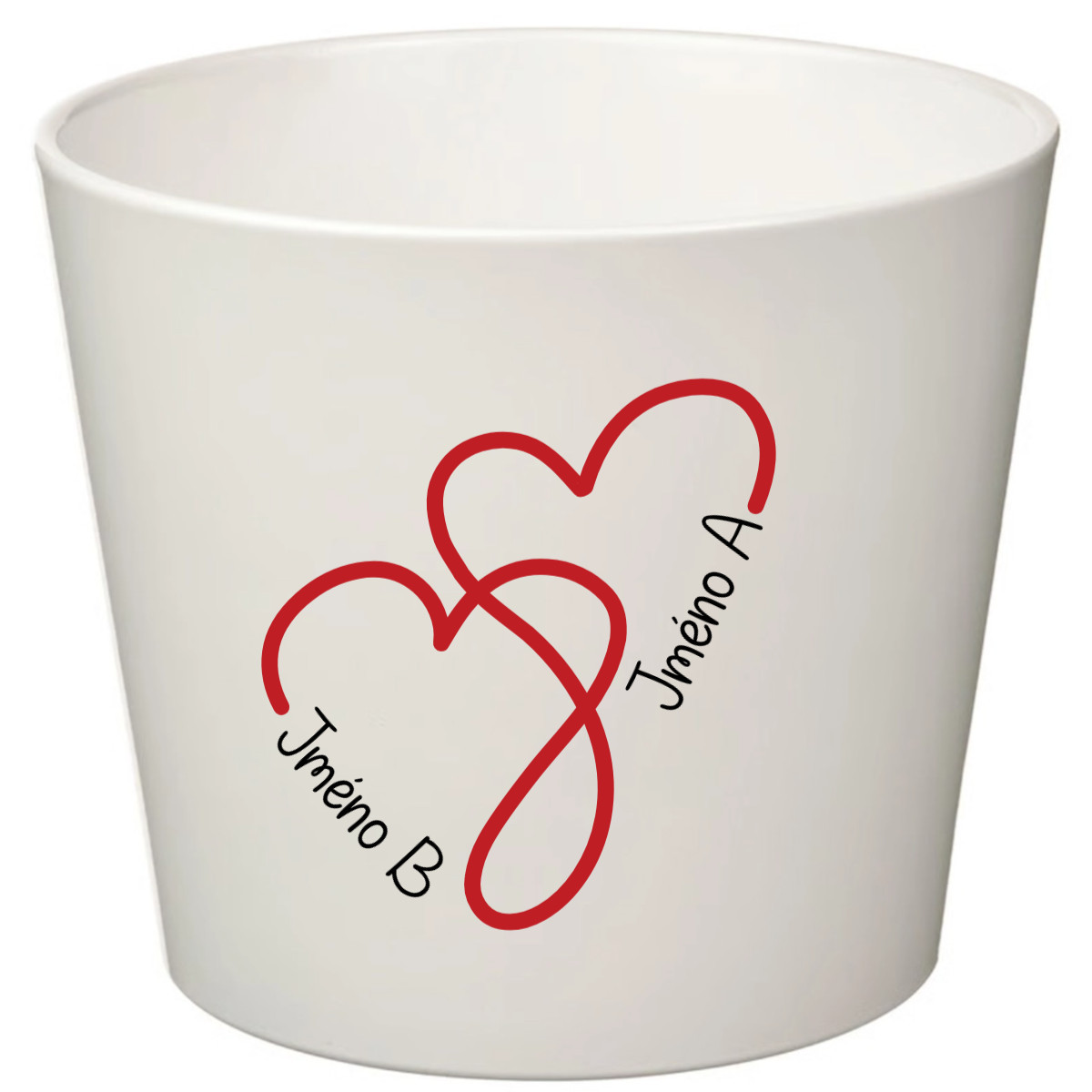 Zákazník si může vybrat barvu srdce — černou nebo červenou — a na každou stranu motivu doplnit vlastní jméno. Vznikne tak jedinečný květináč, který bude připomínat důležitou osobu, vztah nebo společný příběh.