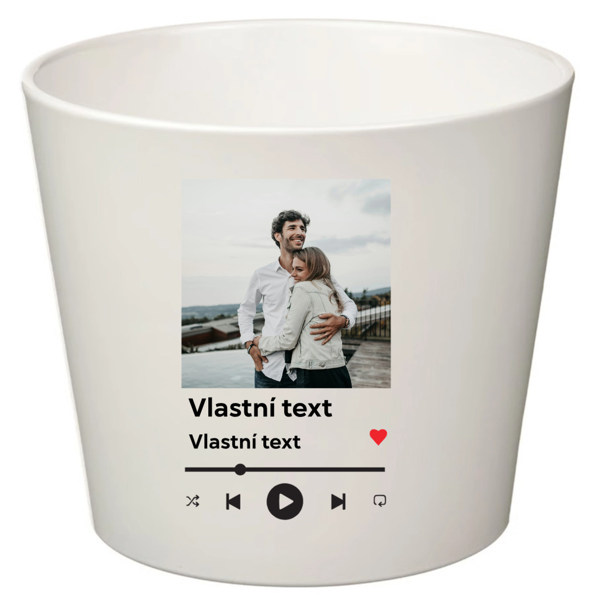 Bílý keramický květináč s vlastním odkazem na oblíbenou písničku - malý