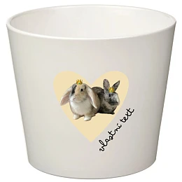 Vytvořte si originální květináč s vlastní fotografií, který bude přesně podle Vás. Nahrajte oblíbenou fotku, vyberte její tvar – kolečko nebo srdce – a doplňte vlastní text. Díky možnosti zvolit barvu textu i barvu pozadí pod fotkou si snadno vytvoříte jedinečný kousek, který krásně zapadne do interiéru.