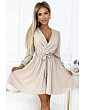 Model má v páse zaväzovanie. Rukávy sú olemované gumičkami. Tieto šaty značky Numoco sú poľským výrobkom a sú k dostaniu vo vínovej bordovej farbe.