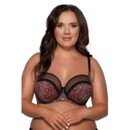 Podprsenka 1130/3 TIGER byla vyrobena s ohledem na větší poprsí. Košíčky jsou vyrobeny z jemného tygrovaného úpletu a průhledné síťoviny zakončené elastickým páskem. Košíčky podprsenky jsou navrženy s bočním panelem spojeným s ramínkem, díky kterému je poprsí pěkně odhalené a shrnuté dovnitř.