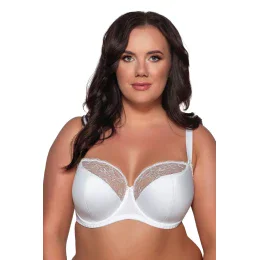Gładki, elegancki biustonosz z miseczkami półusztywnianymi, miseczki wyścielone od spodu przyjemną dla ciała pianką unoszą i podtrzymują biust, zgrabnie kształtując go w dekolcie. Zdobiąca górne partie miseczek stabilna kwiatowa koronka zalotnie okrywa szczyty piersi, pozostawiając to, co ukryte wyobraźni. Dopracowana konstrukcja pozwala na stabilne utrzymanie biustonosza we właściwym miejscu, a szeroki obwód i ramiączka dbają o najwyższy komfort.