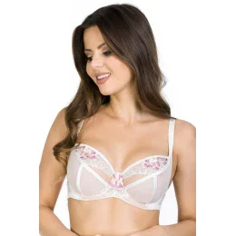 Košíčky modelu sú ušité z tylu. Prešitie košíčkov prekrývajú saténové pásiky. Vrchnú časť košíčkov zdobí čipka. Tiež obvod podprsenky je ozdobený čipkou. Podprsenka je v predaji v jemnej smotanovej farbe.