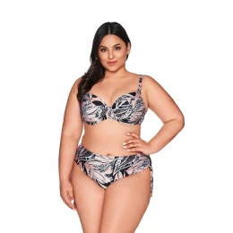 Biustonosz kąpielowy SK 220 FULL CUP wyróżnia się ponadczasową elegancją dzięki klasycznemu połączeniu czerni i koloru w stylu latte. Ten stylowy zestaw doskonale współgra z letnią opalenizną, podkreślając piękno kobiecej sylwetki.