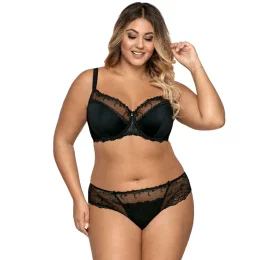 Senzačná polomäkká podprsenka, ktorá je vo výstrihu zakončená priehľadným vyšívaným tylom. Spodná časť košíčkov je hladká, mierne perleťová, s podšívkou. Vďaka dokonalej konštrukcii podprsenka dokonale zbiera a tvaruje prsia, vďaka čomu je výstrih mimoriadne ženský. Zloženie: 88 % polyamid, 8 % bavlna, 4 % elastan.