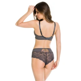 <p>Biustonosz miękki z fiszbinami.</p> <p>Miseczki z beżowej siatki, na którą naszyty jest wzorzysty plen-motyw kwiatowy na grafitowym podkładzie.</p> <p>Boczki z mikrofibry-wzmocnione fiszbiną, grafitowe ramiączka, bawet z koronki, środek zdobi zółta kokardka.</p> <p>Pewna i sprawdzona konstrukcja z modelu Deziro dedykowana dla średnichi dużych biustów.</p> <p>Skład surowcowy: 85%Poliamid, 10% Elastan, 5%Poliester.</p> <p> </p>
