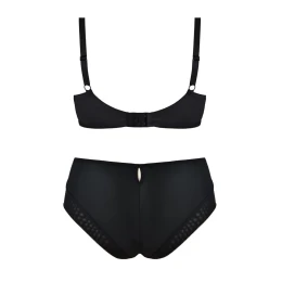 Podprsenka má navíc všitý tyl v oblasti hrudníku, který může ještě zvýšit komfort nošení. Uprostřed podprsenky je šperk, který jí dodává na estetice a eleganci. Košíčky jsou dále vyztuženy bočním panelem z tylu, který může poskytnout dodatečnou podporu a tvar poprsí.