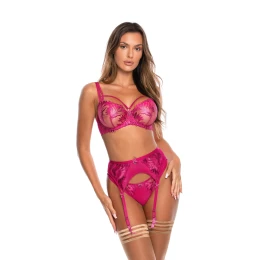 Tento očarujúcia lesklý model mäkkej podprsenky v trblietavej fuksiovej farbe je absolútnym hitom nadchádzajúcej teplej sezóny! Tento model z bohato vyšívanej kvetinovej čipky v kombinácii s jemným tylom na chrbte vám poskytne najvyšší komfort pri nosení v kombinácii s najmodernejšími striebornými doplnkami. Podprsenka má neodnímateľné, nastaviteľné ramienka a ozdobné pásiky zdobiace prsia a ramená. Zadná časť podprsenky sa zapína na dvojradové zapínanie na háčiky s nastaviteľným uzáverom. Materiálové zloženie: polyester 56 %, polyamid 42 %, elastan 2 %