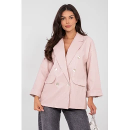 Moderní dámský blejzr z eko-kůže je stylovým návrhem pro každodenní a pracovní stylizace. Vyrobený z vysoké kvality materiálu kombinací viskózy a polyuretanu, působí elegantně a zároveň je pohodlný na nošení. Model střední délky má sklápěcí límce, které zdůrazňují klasický střih. Dvojřadé knoflíky dodávají blejzru výrazný, moderní charakter. Imitace kapes plní dekorativní funkci, zachovávají čistou, hladkou linii vpředu. Blejzr má dlouhé rukávy, není vyztužen ani vyplněn, což ho činí ideálním pro vrstvené stylizace v období jaro / podzim / zima. Hladký vzor ho činí univerzálním a snadno kombinovatelným jak s látkovými kalhoty, tak s džíny nebo šaty. Je to ideální volba pro ženy, které ocení moderní styl, eleganci a nadčasový design.