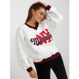 Biela mikina s potlačou a véčkovým výstrihom.