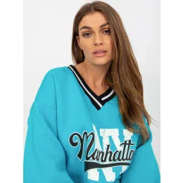 Modrá mikina s potlačou bez kapucne.