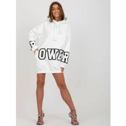 Ecru mini sukienka dresowa z kapturem .