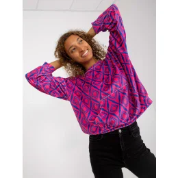 Ružovo-modrá velúrová mikina s potlačou od značky RUE PARIS.