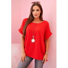 blůza s náhrdelníkem červená model 21959052 - K-Fashion