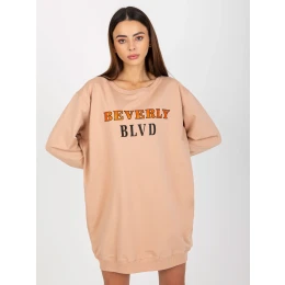 Beżowa luźna bluza z nadrukiem i aplikacją .