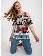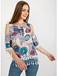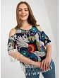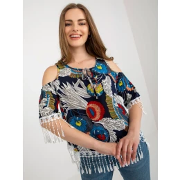 Letná blúzka v námorníckej modrej farbe s potlačou a strapcami.