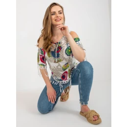 Wymiary bluzki w rozmiarze one size mierzone na płasko: szerokość pod pachami - 51 cm, długość rękawa - 40 cm, długość całkowita - 64 cm.