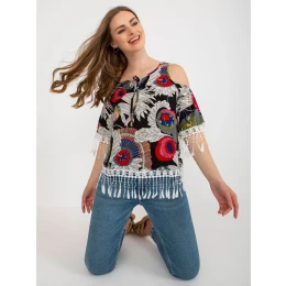 Wymiary bluzki w rozmiarze one size mierzone na płasko: szerokość pod pachami - 51 cm, długość rękawa - 40 cm, długość całkowita - 64 cm.