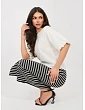 Modelka má na sebe veľkosť S. Rozmery modelky: výška 173 cm, prsia 85 cm, pás 62 cm, boky 95 cm.