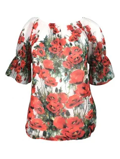 Rozmery blúzky veľkosti 1 merané na plocho: šírka v podpazuší - 45 cm, celková dĺžka - 60 cm, dĺžka rukáva - 57 cm.