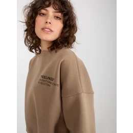 Tmavobéžová krátka mikina s kapucňou a okrúhlym výstrihom .