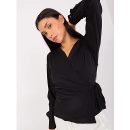 Čierna spoločenská blúzka s obálkovým výstrihom.