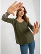 Základná bavlnená blúzka v khaki farbe s výstrihom do V.