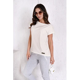 Hladká blúzka s malou nášivkou a mierne predĺženým chrbtom.