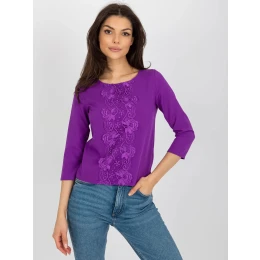 Fialová krátka spoločenská blúzka s 3/4 rukávmi.